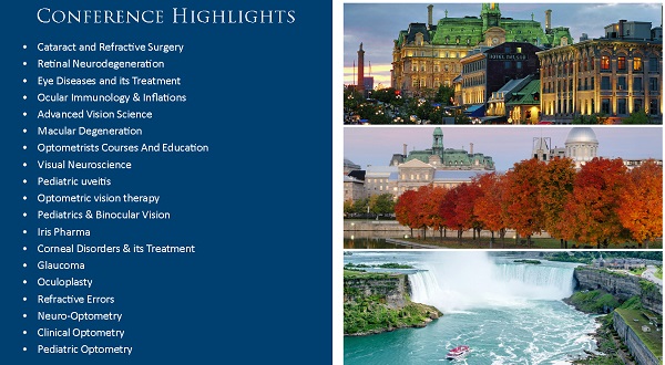 Greetings from World Optometry 2018. It is our great honour to invite all the academicians and researchers to be as a speakers or delegates at the upcoming 18th World Congress on Optometry & Vision Science scheduled during September 26-27,2018 in Montreal, Canada. Theme: Ophthalmologist's Outlook: Breaking the Barriers in Eye Research Through Clinical and Academic Advancements Benefits: 1. 90000+ users and 160000+ views to our Library containing Abstracts.