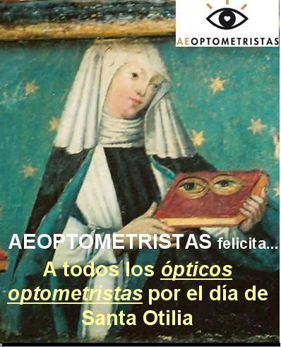 El martirologio romano relaciona a Santa Otilia, Santa Clara y Santa Lucía con la curación milagrosa de enfermedades de los ojos. Santa Lucía, patrona también de los oftalmólogos, es la más conocida en nuestro entorno, sin embargo, Santa Otilia, patrona también de los ópticos-optometristas, es venerada con mayor profusión en la Europa continental. Su historia, a caballo entre la evidencia proporcionada por los documentos históricos y las leyendas sembradas y difundidas durante la Alta Edad Media en la Europa occidental, merece la pena ser contada por ser bagaje imprescindible en el imaginario colectivo de nuestra profesión.